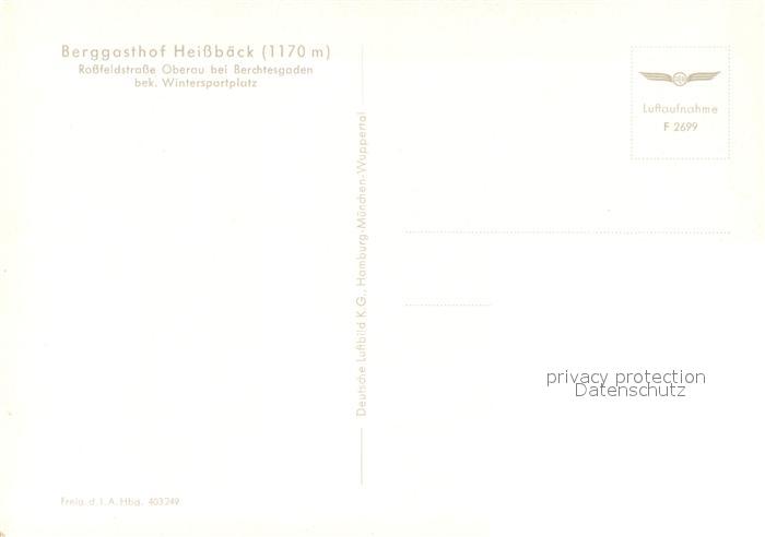 73650433 Oberau Berchtesgaden Berggasthof Heissbaeck Rossfeldstrasse Alpen Fliegeraufnahme postalisch nicht gelaufen Erhaltung siehe scans [FriedD77] KatCode: 11110009172116