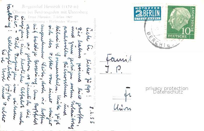 72884398 alte Postkarte Oberau Berchtesgaden Berggasthof Heissbaek Untersberg postalisch gelaufen Erhaltung siehe scans [PaolaD17] KatCode: 11110009172116
