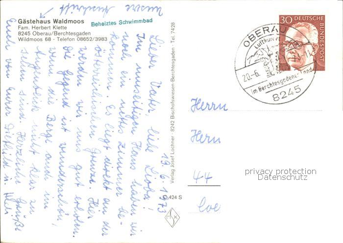 72226939 alte Postkarte Oberau Berchtesgaden Gaestehaus Waldmoos postalisch gelaufen Erhaltung siehe scans KatCode: 11110009172116