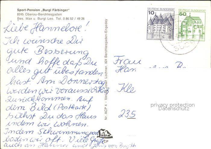 72539300 alte Postkarte Oberau Berchtesgaden Sport Pension Burgl Faerbinger postalisch gelaufen Erhaltung siehe scans [AndreD76 kt119box] KatCode: 11110009172116