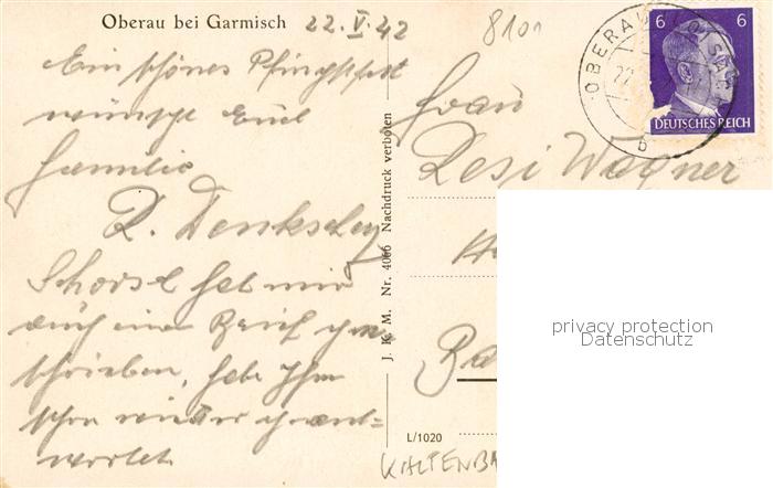 73790717 Oberau Garmisch-Partenkirchen Totalansicht postalisch gelaufen Erhaltung siehe scans [LiesaD40] alte Postkarte Lies Katcode 11110009180117