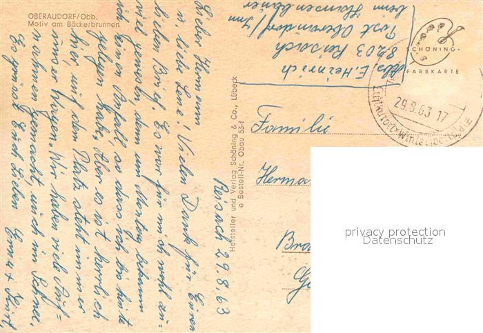 72856709 alte Postkarte Oberau Loisach am Baeckerbrunnen postalisch gelaufen Erhaltung siehe scans [LiesaD40] KatCode: 11110009180126