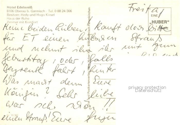 73645930 Oberau Loisach Hotel Edelweiss Restaurant Winterpanorama Alpen Huber Karte Nr 10362 postalisch nicht gelaufen Erhaltung siehe scans [FriedD77] KatCode: 11110009180126