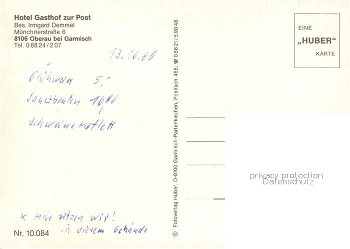 73646396 Oberau Loisach Hotel Gasthof zur Post postalisch nicht gelaufen Erhaltung siehe scans [WerneD78] KatCode: 11110009180126