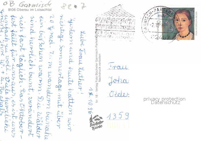 72890037 alte Postkarte Oberau Loisach Panorama Loisachtal Zugspitzegruppe Wettersteingebirge postalisch gelaufen Erhaltung siehe scans [FriedD77] KatCode: 11110009180126