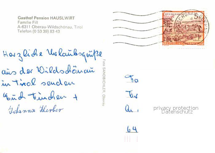 12637487 alte Postkarte Oberau Tirol Gasthaus Pension Hauslwirt postalisch gelaufen Erhaltung siehe scans [LiesaD40] KatCode: 11390335070530