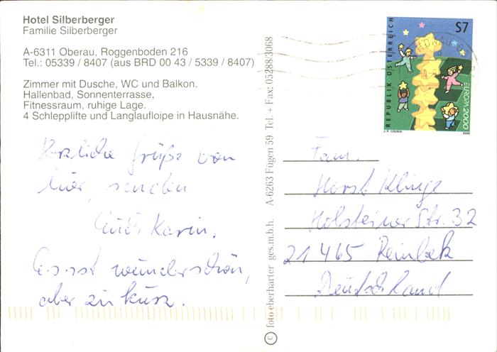 71436205 alte Postkarte Oberau Tirol Hotel Silberberger Spielplatz Ortsansicht postalisch gelaufen Erhaltung siehe scans KatCode: 11390335070530