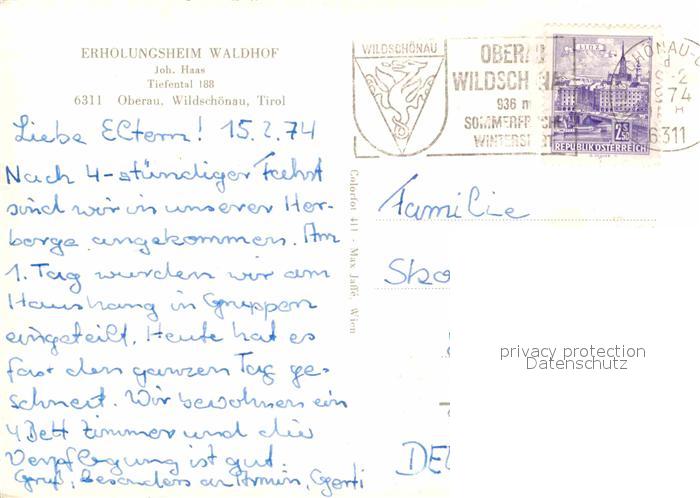 72673350 alte Postkarte Oberau Wildschoenau Tirol Erholungsheim Waldhof Winterpanorama Alpen postalisch gelaufen Erhaltung siehe scans [FriedD77] KatCode: 11390335070513