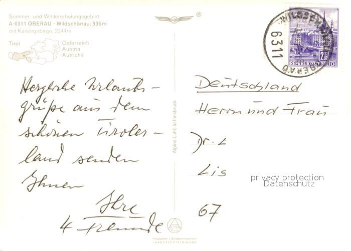 12935011 Oberau Wildschoenau Tirol Fliegeraufnahme postalisch nicht gelaufen Erhaltung siehe scans [AndreD76] KatCode: 11390335070513