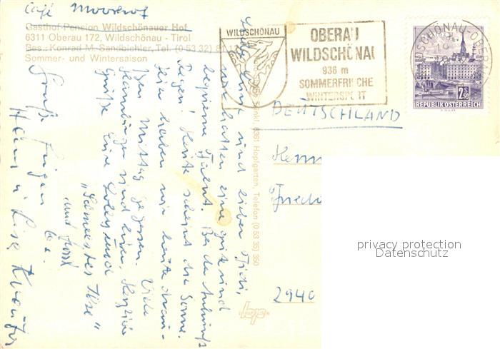 73630024 alte Postkarte Oberau Wildschoenau Tirol Gasthof Pension Wildschoenauer Hof Terrasse Schaukel postalisch gelaufen Erhaltung siehe scans [WerneD78] KatCode: 11390335070513