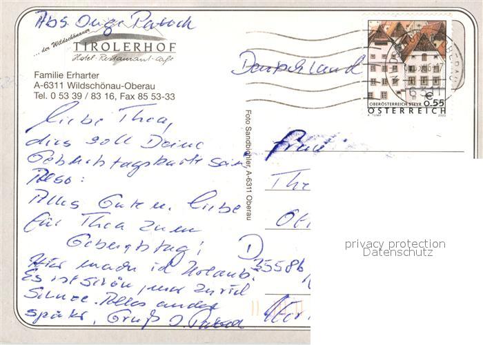 73592671 alte Postkarte Oberau Wildschoenau Tirol Hotel Restaurant Cafe Tirolerhof postalisch gelaufen Erhaltung siehe scans [KathaD81] KatCode: 11390335070513