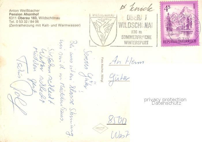 73160937 alte Postkarte Oberau Wildschoenau Tirol Pension Ahornhof postalisch gelaufen Erhaltung siehe scans [WerneD78] KatCode: 11390335070513