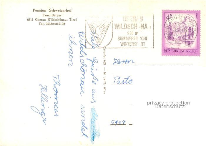 73591025 alte Postkarte Oberau Wildschoenau Tirol Pension Schweizerhof Winter Sommer postalisch gelaufen Erhaltung siehe scans [KathaD81] KatCode: 11390335070513