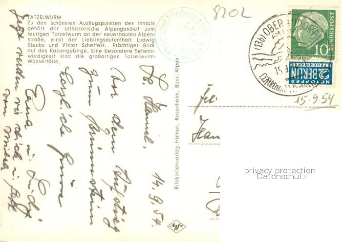 73143729 alte Postkarte Oberaudorf Alpengasthof Tatzelwurm Blick gegen Kaisergebirge postalisch gelaufen Erhaltung siehe scans [FriedD77] KatCode: 11110009187157