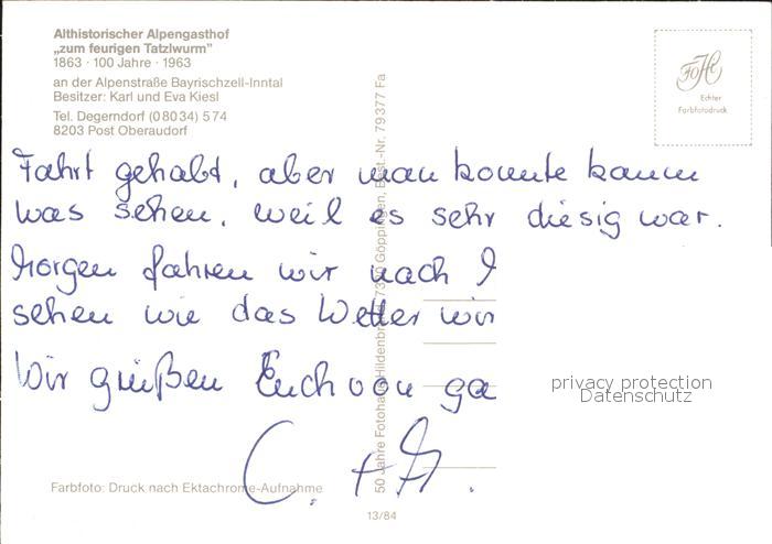 72247607 Oberaudorf Althistorischer Alpengasthof Zum feurigen Tatzlwurm Alpenstrasse postalisch nicht gelaufen Erhaltung siehe scans KatCode: 11110009187157