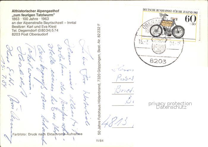 72549651 alte Postkarte Oberaudorf Althistorischer Gasthof zum feurigen Tatzelwurm postalisch gelaufen Erhaltung siehe scans [AndreD76 kv022box] KatCode: 11110009187157