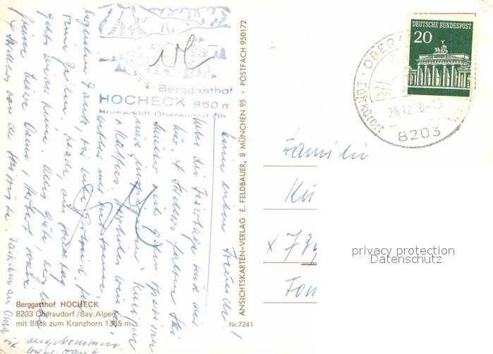 72751770 alte Postkarte Oberaudorf Berggasthof Hocheck Winterpanorama Bayerische Alpen postalisch gelaufen Erhaltung siehe scans [FriedD77] KatCode: 11110009187157