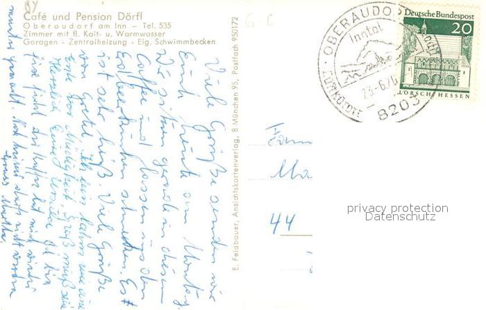 73271944 alte Postkarte Oberaudorf Cafe Pension Doerfl Fischteich postalisch gelaufen Erhaltung siehe scans [FriedD77] KatCode: 11110009187157