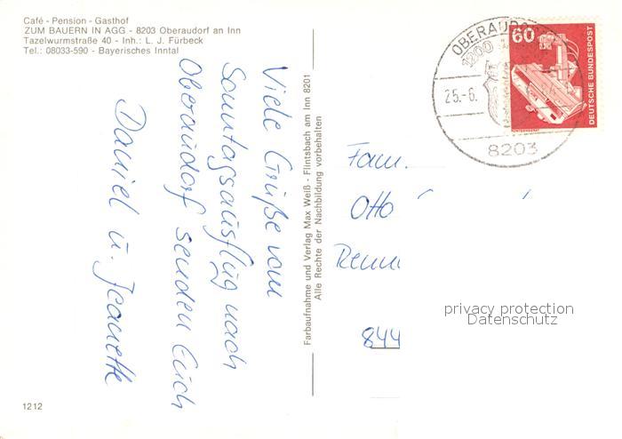 73654506 alte Postkarte Oberaudorf Cafe Pension Gasthof Zum Bauern in Agg Alpen postalisch gelaufen Erhaltung siehe scans [FriedD77] KatCode: 11110009187157