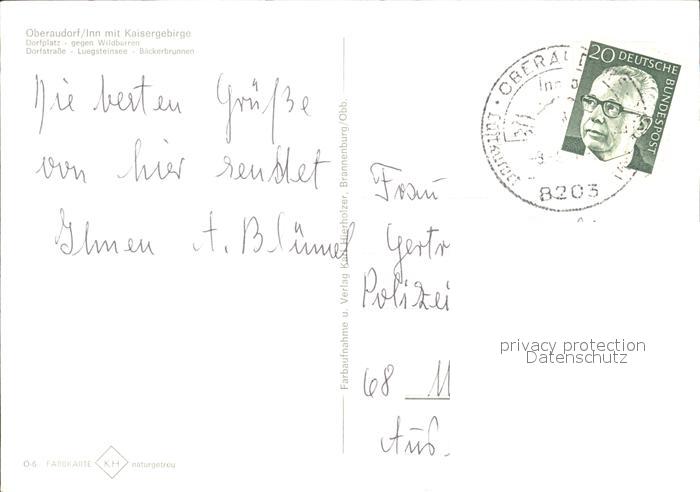 72362549 alte Postkarte Oberaudorf Dorfplatz Wildbaren Luegsteine Baeckerbrunnen postalisch gelaufen Erhaltung siehe scans KatCode: 11110009187157