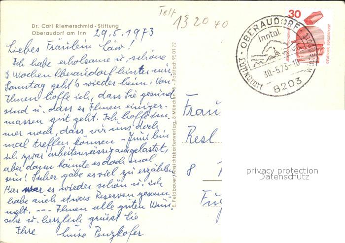 72583880 alte Postkarte Oberaudorf Dr. Carl Riemerschmid Stiftung postalisch gelaufen Erhaltung siehe scans [LiesaD40] KatCode: 11110009187157