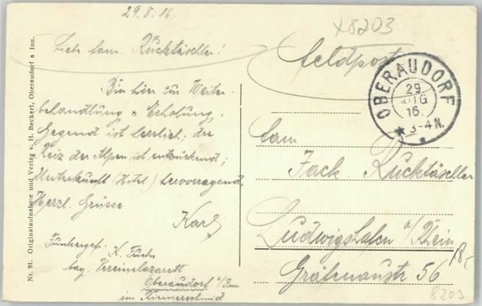 40208550 Oberaudorf Feldpost Weber an der Wand x 1916 KatCode 11110009187157