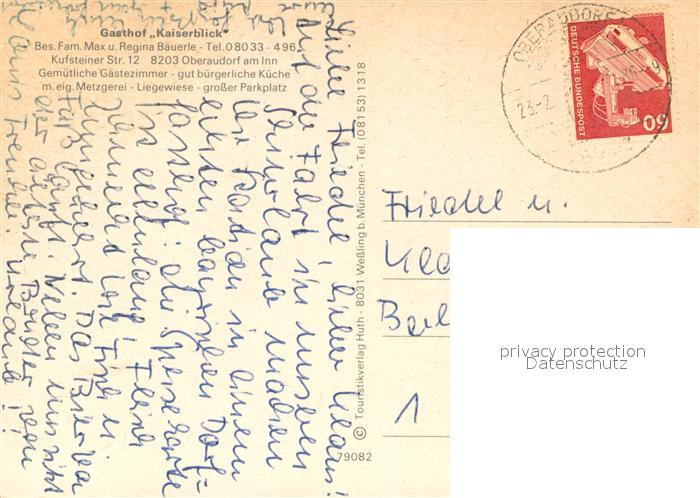 73652775 alte Postkarte Oberaudorf Gasthof Kaiserblick postalisch gelaufen Erhaltung siehe scans [WerneD78] KatCode: 11110009187157