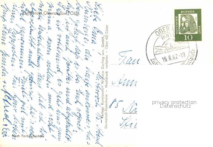72698773 alte Postkarte Oberaudorf Hauptstrasse Brunnen Kirche Alpenblick Luftkurort postalisch gelaufen Erhaltung siehe scans [FriedD77] KatCode: 11110009187157