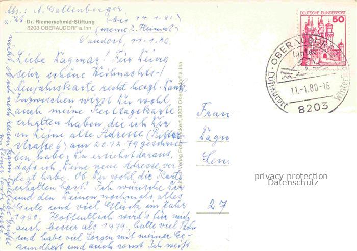 74021414 alte Postkarte Oberaudorf Inn Dr. Riemerschmid-Stiftung postalisch gelaufen Erhaltung siehe scans [FriedD77] KatCode: 11110009187157