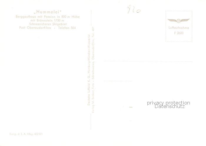 73834541 Oberaudorf Inn Hummelei Berggasthaus und Pension Fliegeraufnahme postalisch nicht gelaufen Erhaltung siehe scans [WerneD78] Wern Katcode 11110009187157