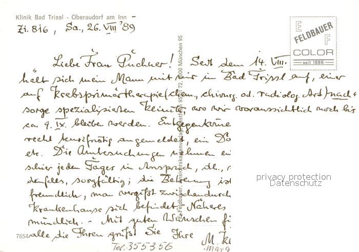 73744720 Oberaudorf Inn Klinik Bad Trissl postalisch nicht gelaufen Erhaltung siehe scans [LiesaD40] KatCode: 11110009187157