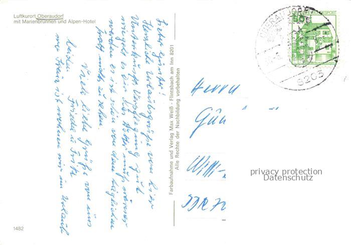 74132421 Oberaudorf Inn Rosenheim Bayern Marienbrunnen Alpenhotel Luftkurort postalisch gelaufen Erhaltung siehe scans [FriedD77] alte Postkarte Frie Katcode 11110009187157