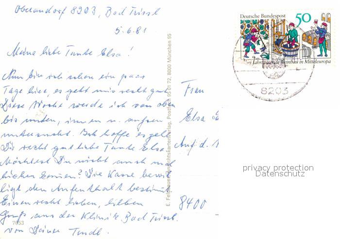 72899998 alte Postkarte Oberaudorf Klinik Bad Trissl postalisch gelaufen Erhaltung siehe scans [NatalD47] KatCode: 11110009187157