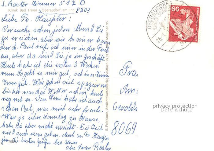 73204219 alte Postkarte Oberaudorf Klinik Bad Trissl postalisch gelaufen Erhaltung siehe scans [NatalD47] KatCode: 11110009187157