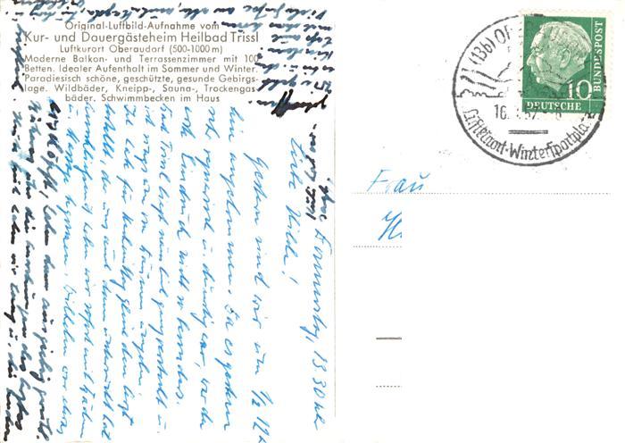 73863839 alte Postkarte Oberaudorf Kur- und Dauergaesteheim Heilbad Trissl postalisch gelaufen Fliegeraufnahme Erhaltung siehe scans [FriedD77] KatCode: 11110009187157