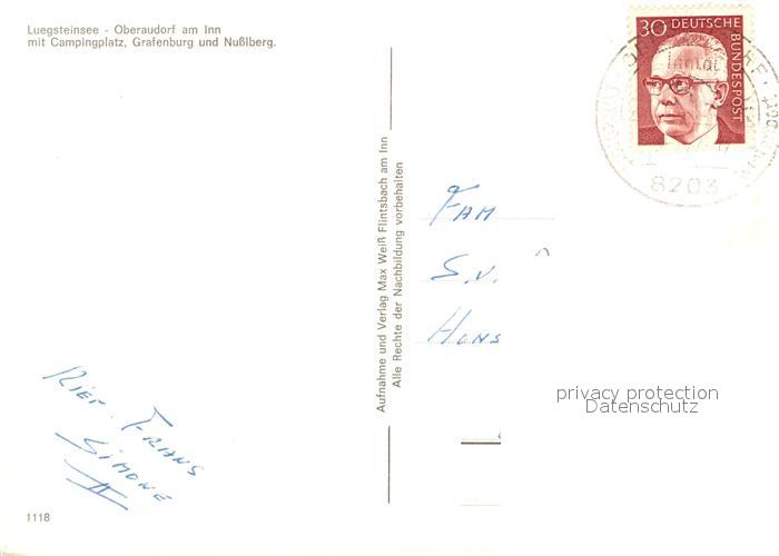 72935638 alte Postkarte Oberaudorf Luegsteinsee mit Campingplatz Grafenburg und Nusslberg postalisch gelaufen Erhaltung siehe scans [FriedD77] KatCode: 11110009187157