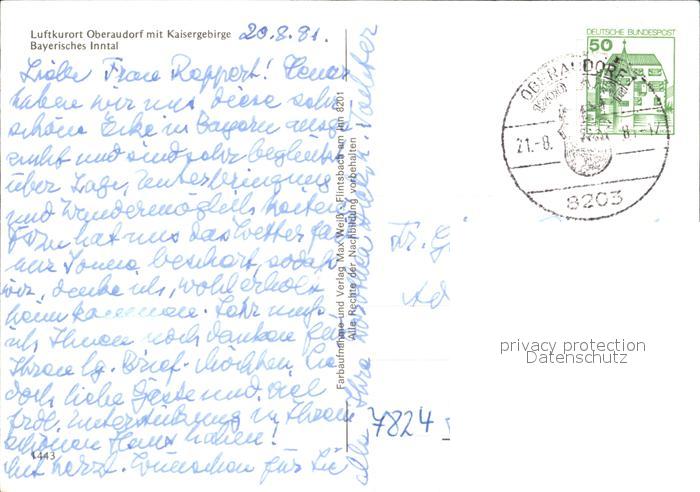 72479945 alte Postkarte Oberaudorf mit Kaisergarten und Inntal postalisch gelaufen Erhaltung siehe scans KatCode: 11110009187157