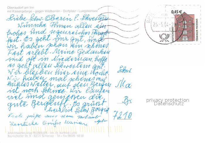 72738715 alte Postkarte Oberaudorf mit Kaisergebirge gegen Wildbarren Dorfplatz Luegsteinsee postalisch gelaufen Erhaltung siehe scans [LiesaD40] KatCode: 11110009187157