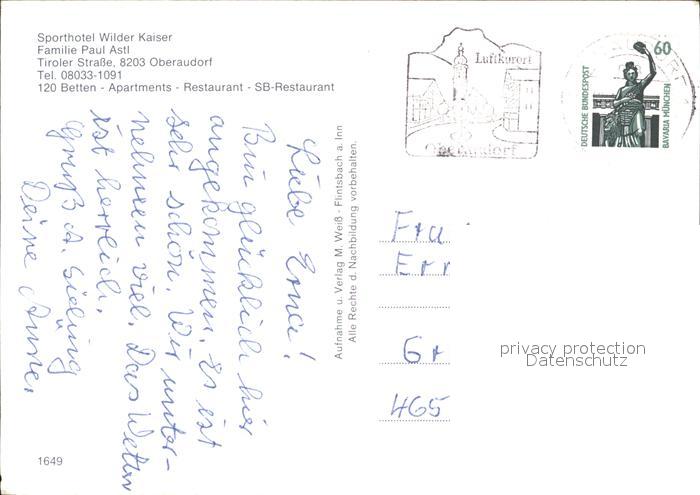 72285814 alte Postkarte Oberaudorf Sporthotel Wilder Kaiser Kaisergebirge postalisch gelaufen Erhaltung siehe scans KatCode: 11110009187157