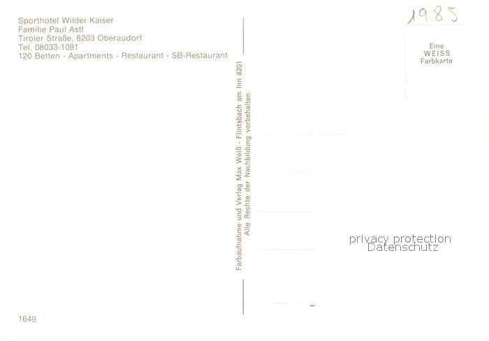 72932209 Oberaudorf Sporthotel Wilder Kaiser Paul Asti postalisch nicht gelaufen Erhaltung siehe scans [LiesaD40] KatCode: 11110009187157