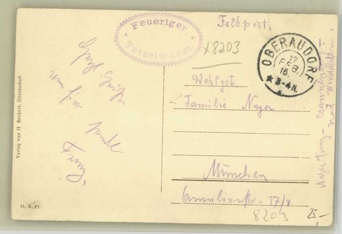 40208232 Oberaudorf [Stempelabschlag] Feldpost Gasthaus zum feurigen Tatzelwurm Gedicht Drachen x 1916 KatCode 11110009187157