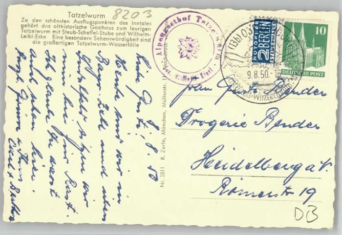 40208377 Oberaudorf [Stempelabschlag] Gasthaus Tatzelwurm x 1950 KatCode 11110009187157