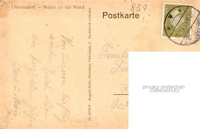 73572082 alte Postkarte Oberaudorf Weber an der Wand postalisch gelaufen Erhaltung siehe scans [FriedD77] KatCode: 11110009187157