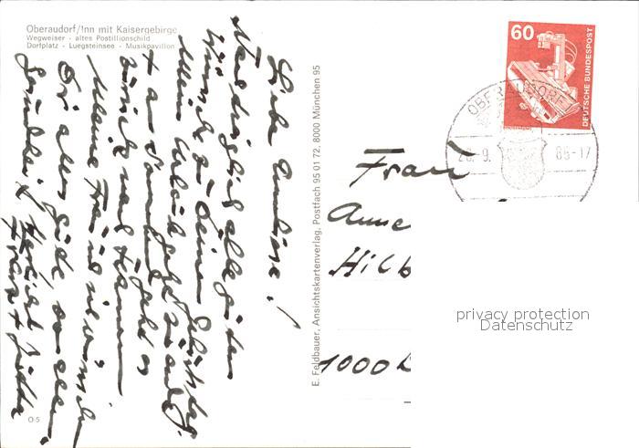 72578336 alte Postkarte Oberaudorf Wegweiser Postillionenschild Dorfplatz Musikpavillon postalisch gelaufen Erhaltung siehe scans [AndreD76] KatCode: 11110009187157
