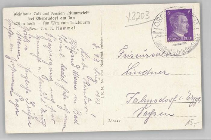 40208385 Oberaudorf Weinhaus Cafe Hummelei x 1942 KatCode 11110009187157