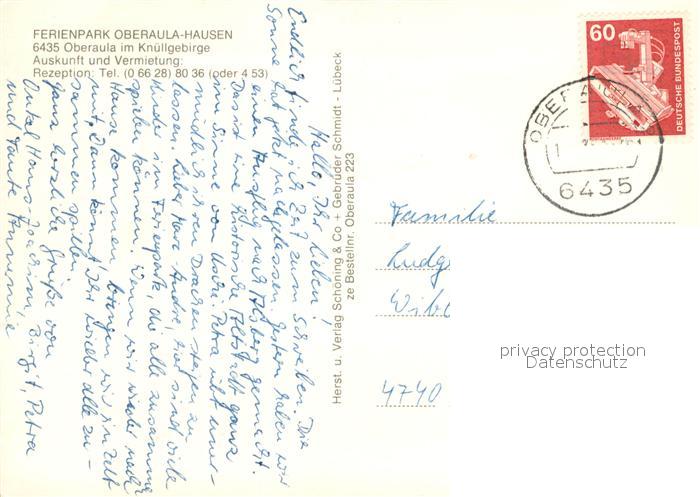 73648774 alte Postkarte Oberaula Ferienpark Oberaula Hausen Alte Eichen Wurzelschnitzerei Kegelbahn Eisenberg Hessenstube postalisch gelaufen Erhaltung siehe scans [WerneD78] KatCode: 11110006634019