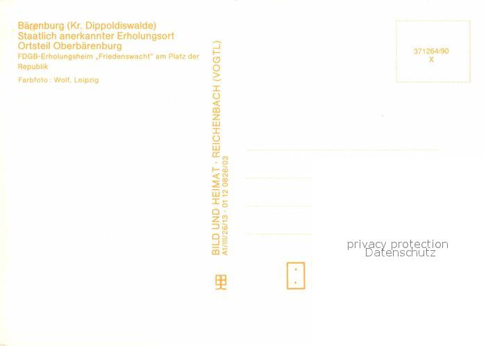 72653028 Oberbaerenburg Baerenburg FDGB Erholungsheim Friedenswacht Platz der Republik postalisch nicht gelaufen Erhaltung siehe scans [FriedD77] KatCode: 11110014290010