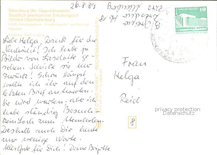 72353820 alte Postkarte Oberbaerenburg Baerenburg FDGB Erholungsheim Friedenswacht Platz der Republik postalisch gelaufen Erhaltung siehe scans KatCode: 11110014290010