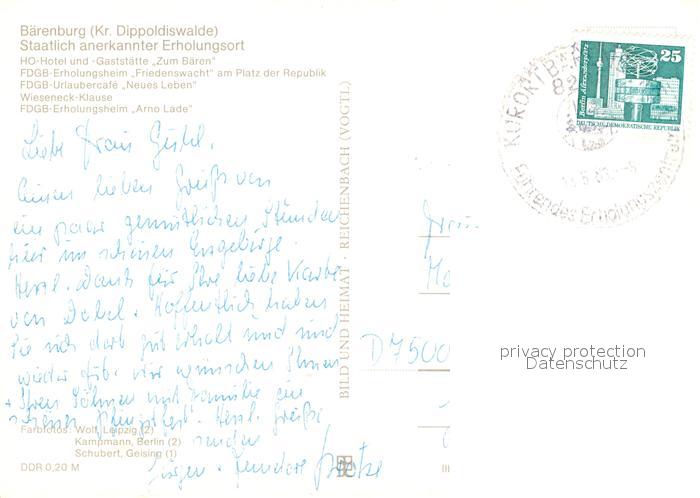 73115981 alte Postkarte Oberbaerenburg Baerenburg Gasthaus Zum Baeren FDGB Erholungsheim postalisch gelaufen Erhaltung siehe scans [KathaD81] KatCode: 11110014290010
