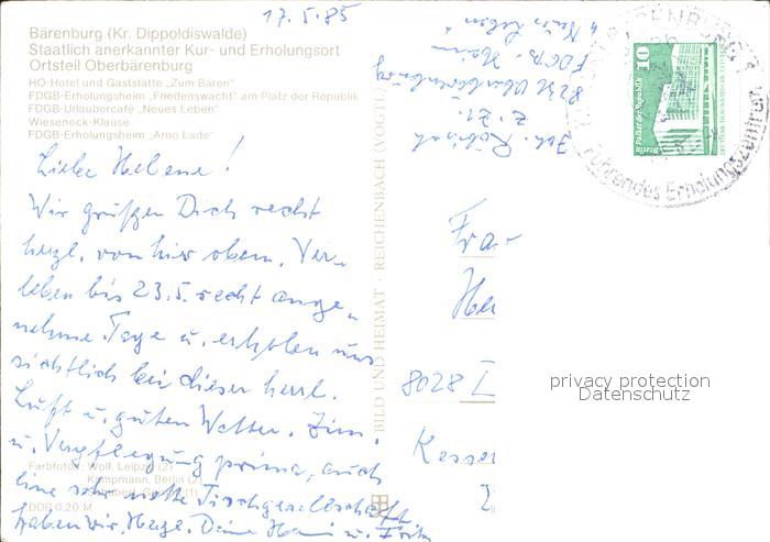 72261846 alte Postkarte Oberbaerenburg Baerenburg HO Hotel Gaststaette Zum Baeren FDGB Erholungsheim Wieseneck Klause postalisch gelaufen Erhaltung siehe scans KatCode: 11110014290010